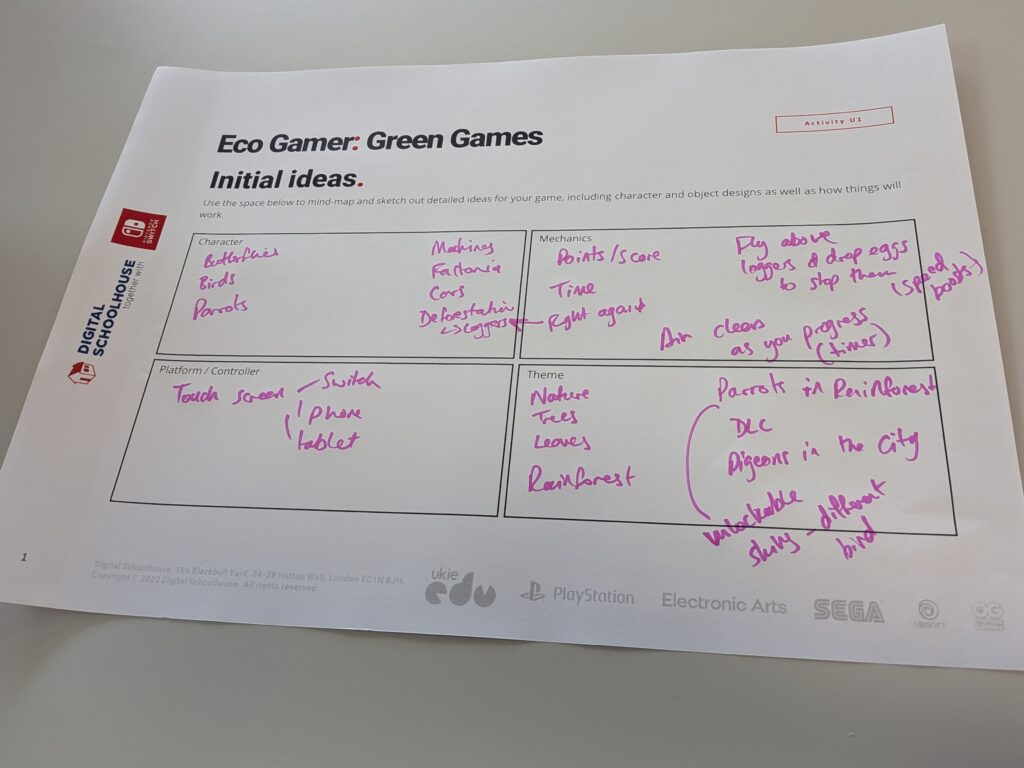 As a team, our table worked together to generate initial game ideas before coming up with our brand identity ready to design some eco-friendly packaging. I really liked how we were taken through the steps of the game jam as learners rather than just being told about how it worked! We were also introduced to Construct 3 as a tool for creating games, which looks really interesting (I’ll save that for a later blog post!) I honestly could have happily spent the rest of the day, planning and developing our game! I’ve done game and app jams/workshops in the past in school and always loved how much could be achieved when having a whole day to work on a project compared to spreading it out across multiple lessons! Here’s a link to a previous post about a girls’ game day I put together many years ago and a Koduthon at Microsoft HQ.
