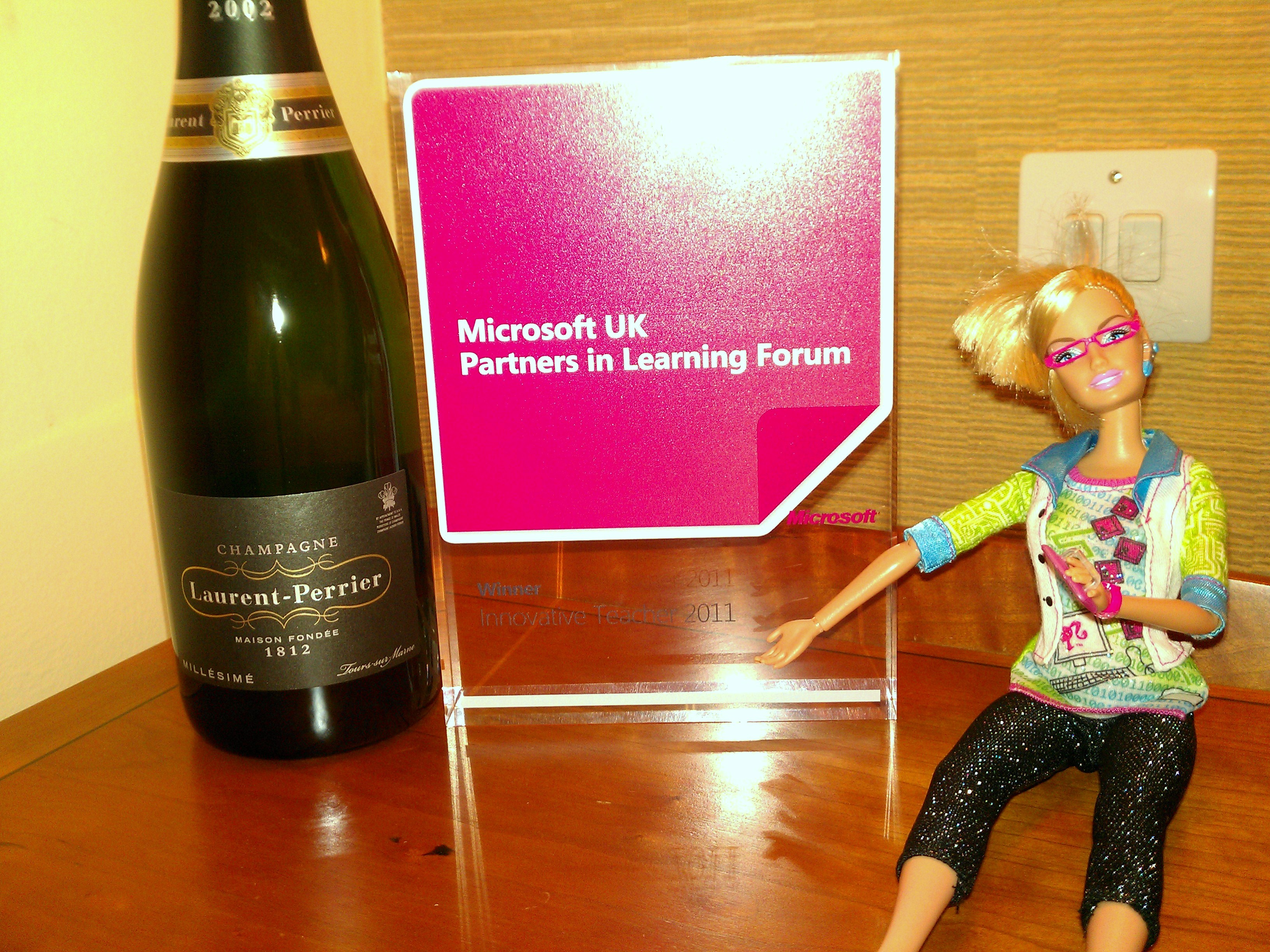 At the end of the evening, Stuart and Dan presented the ten prize winners of the Innovative Teacher Awards with beautiful glass awards and bottles of Champagne, it was a true honour to be one of the ten and I allowed GeekyBarbie to look after my award back at the hotel later.