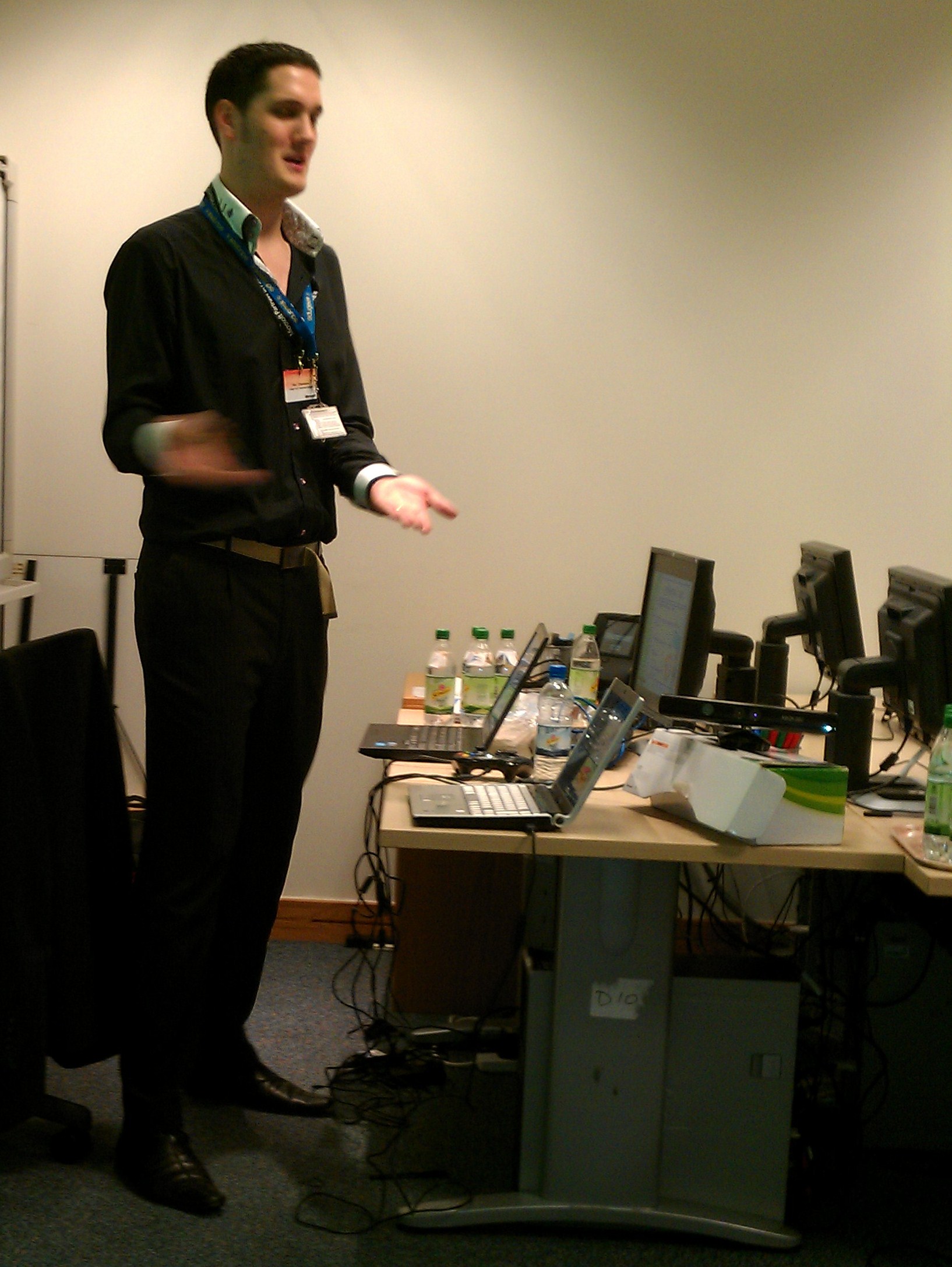hen Ray talked about how he had been using the Kinect to engage his students when delivering his unit on databases and how it had progressed from there, he has also developed software for teachers of other subjects (particularly music) on request, which I find totally amazing, I don’t know how he finds the time! He’s such a nice guy. He gave a great hands-on session, giving everyone a chance to program their very own Kinect application using C#, with most of the delegates doing so successfully (even with no previous programming experience!)